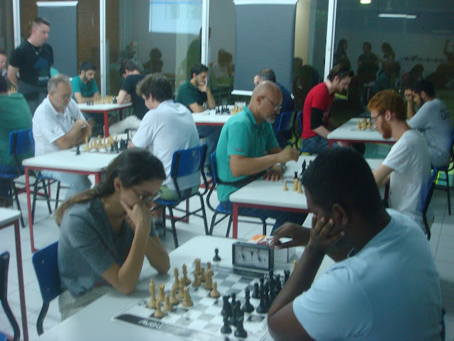 Ainda não preparamos a lista atualizada de rating e as listas de pontos acumulados no Grand Prix (trocar de bolsista a cada dois anos dá nisso... Quando o bolsista fica craque no processo, deve ser trocada por um noviço, que tem que aprender tudo do zero... Mas, faz parte do ofício de ser professor...). Mas, já temos os resultados finais desse que foi o nosso primeiro torneio do ano e marcou a inauguração de nosso novo espaço no ginásio.